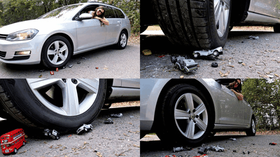 Madame Marissa just got her car's tires fixed because they had lost their treads, and she needed to fix them. At the garage they changed all her tires and she decided to take them on a test drive so she bought some toy cars and crushed them under her new tires. She makes sure that they are broken into several pieces and when she is done with them, she is well pleased with her new pairs of tires.