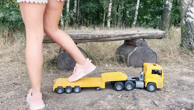 Madame Marissa is a crush fetish queen and loves to stomp anything she can into pieces all over the floor. Today she has on some jeans and red sneakers. She puts a giant toy truck in the floor and it seems too strong for her to crush, but she is a professional. She stands on top of it with her full weight and it starts to break and she keeps stomping until it's crushed.