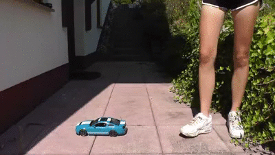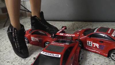 When it comes to crushing stuff under her strong feet, Christin takes the honors. No one else comes close. Wearing her old Nike sneakers, she took a race toy car and enjoyed trampling on it and crushing it with her weight. She stomped the car and the car could not withstand her merciless feet and it was soon in pieces, which she looked at with a look of satisfaction and accomplishment.
